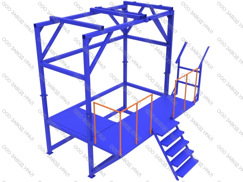 Мобильная опорная рама для установки без фундамента Усиленная конструкция Площадка для обслуживания оборудования Складная лестница для транспортировки Ограждение по периметру площадки Крепежные конструкции для электрических кабелей Разборная конструкция для транспортировки Опорные площадки крепления Смесительного блока Встроенное крепление для Щита управления Габариты (Д/Ш/В), 3900/2400/3500 мм Масса не более, 750 кг